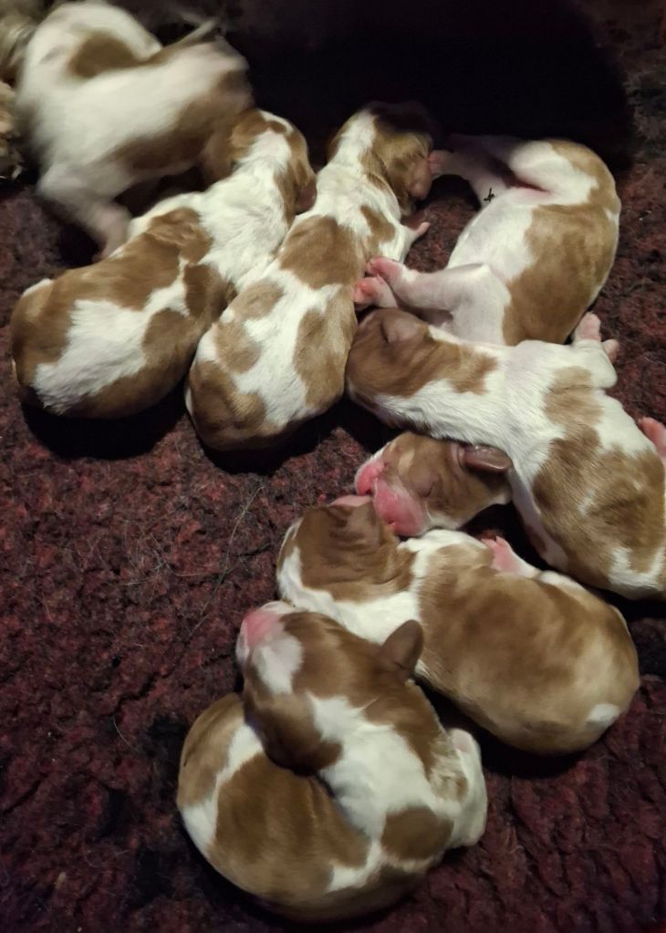 30 januari 2026. Inatt kom de små underverken. 3 killar och 4 tjejer. Allt har gått bra och Udda är en supermamma.