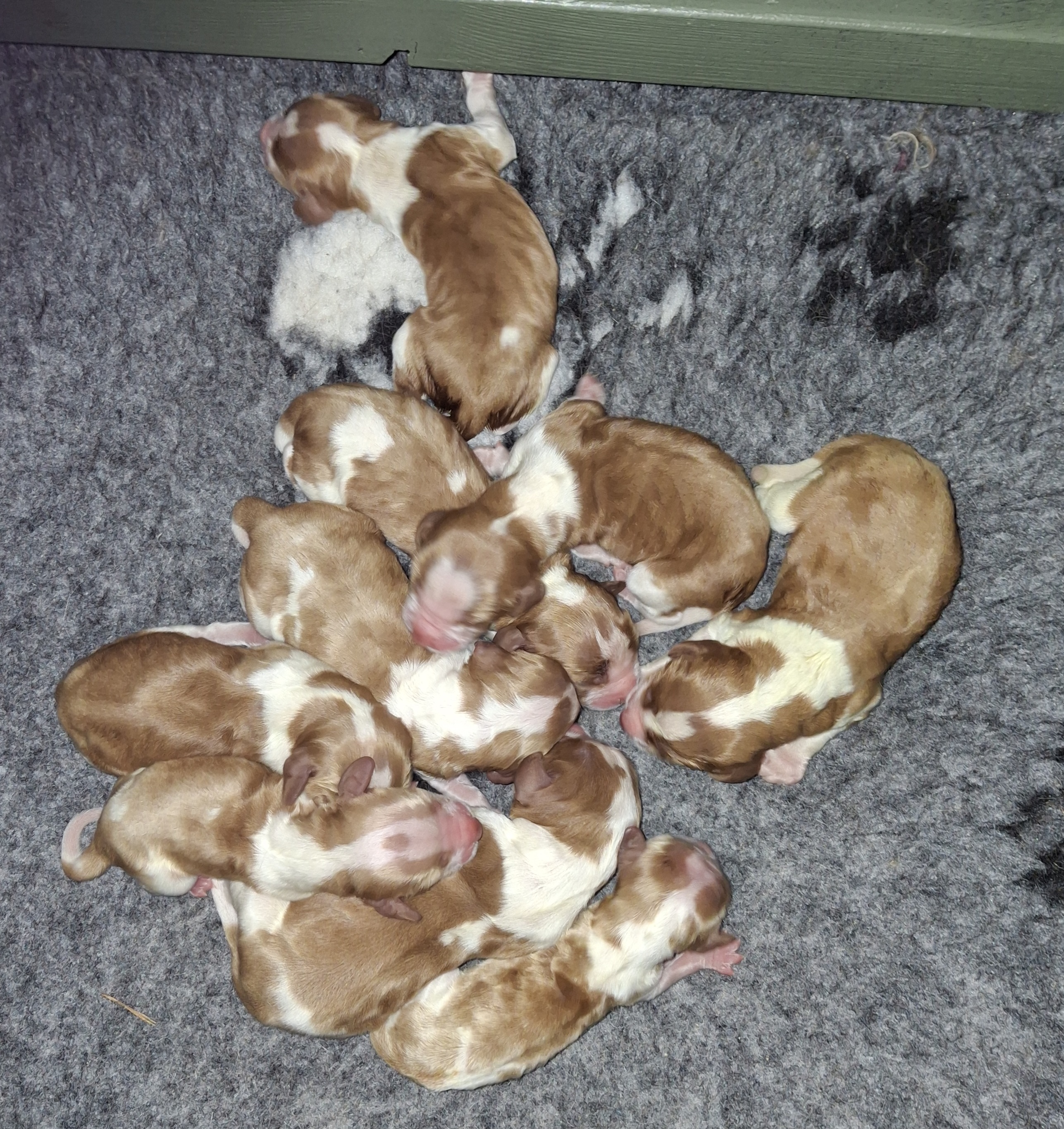 Idag föddes Uddas och Mannens valpar. Två är betydligt mindre, men diar och verkar nöjda.